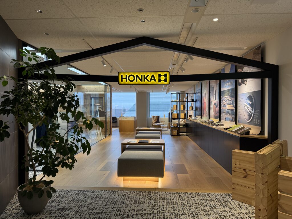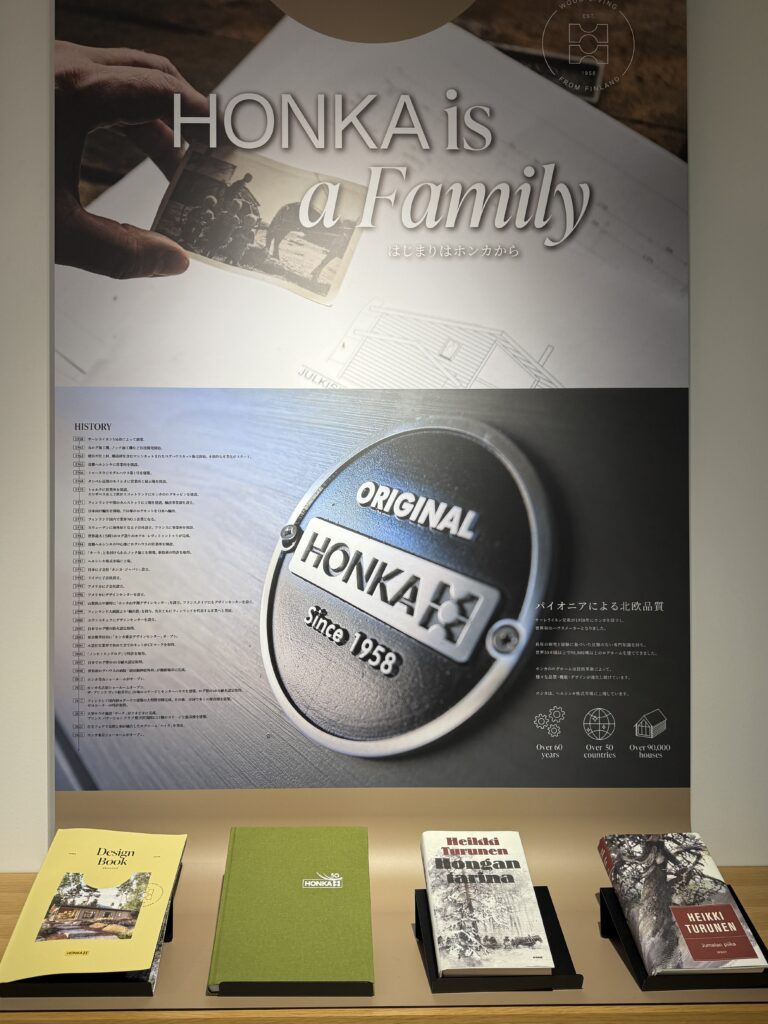 ショールームには、サンプルやフィンランド版のカタログもそろっていて、ホンカの歴史もご理解いただけ、ホンカを知り尽くしたスタッフがスタンバイしておりますので、ホンカをより詳しく知っていただけると思います。