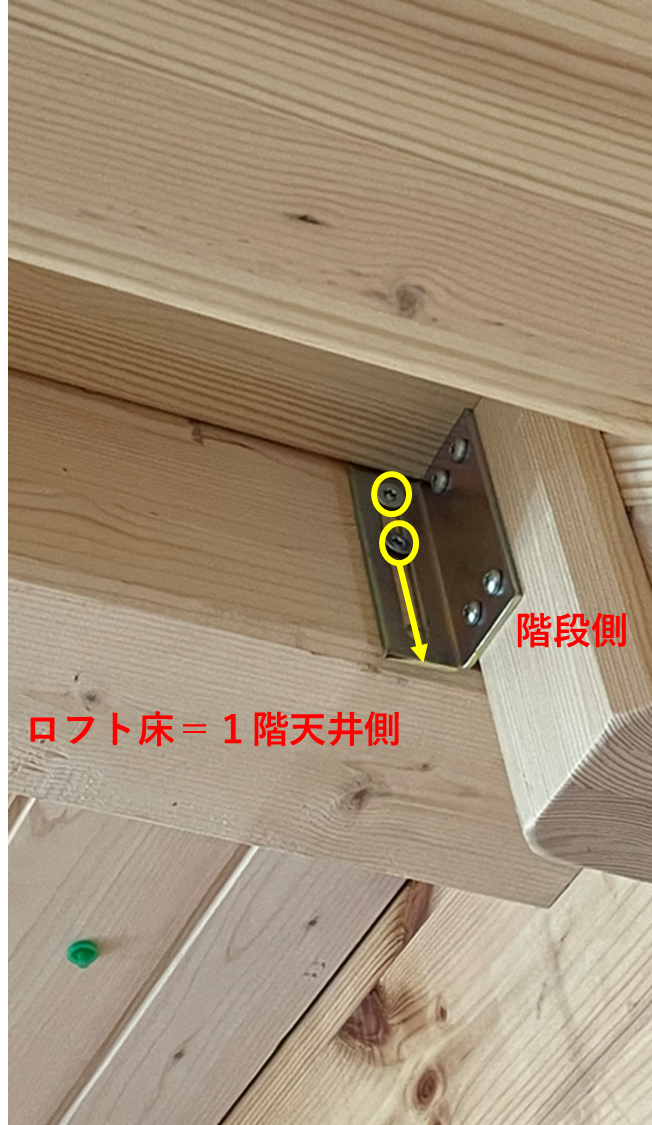 ロフトの床(写真奥側)も下がってくるので、階段(手前側)との接続箇所は写真のように天井が下がるのを吸収できるようになっています。