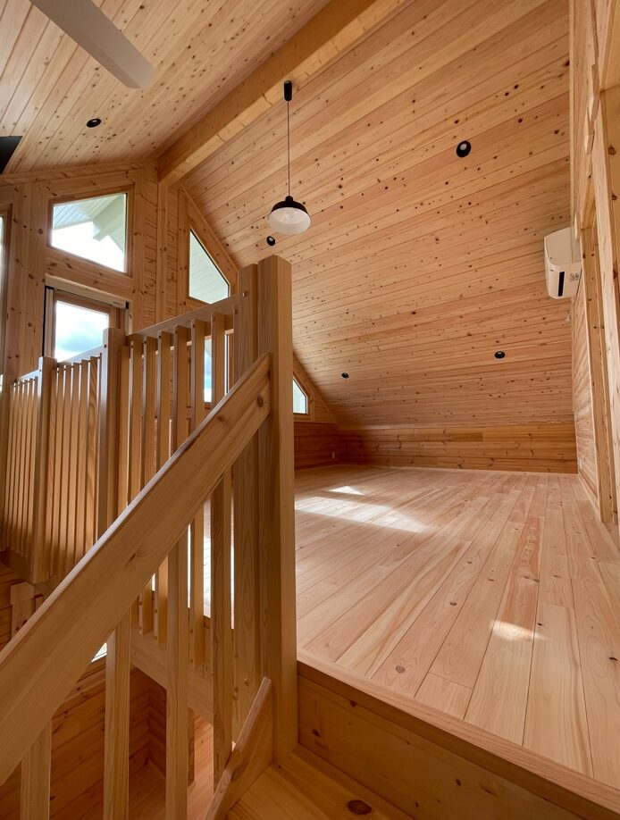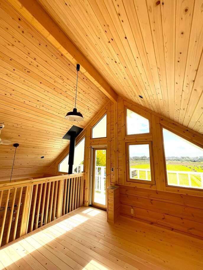 あとはログとログパネルで設えた部屋の様子を見ていただきましょう。