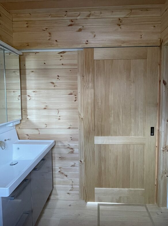 お風呂も日本式湯舟は、日本人には必須。海外のログハウスではシャワーのみやシャワーとサウナなどが主流になってきます。