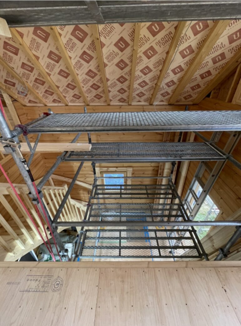 現在建て方をご覧いただいている京都府のログホームもいよいよ佳境に入ってきました。