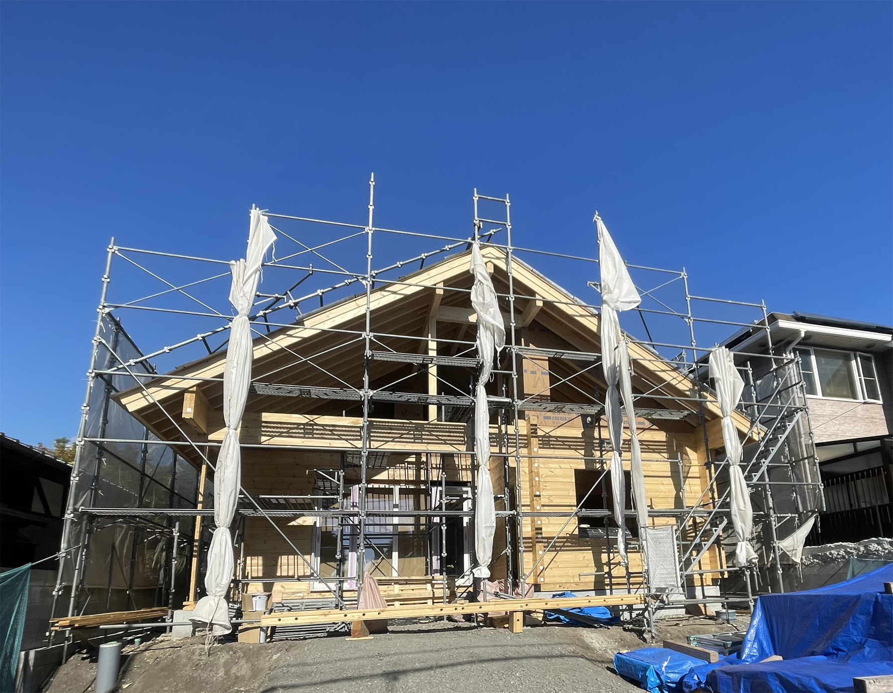 年内は屋根仕舞いを行い、建具取付けなど外部の工事まで完了させる予定です!