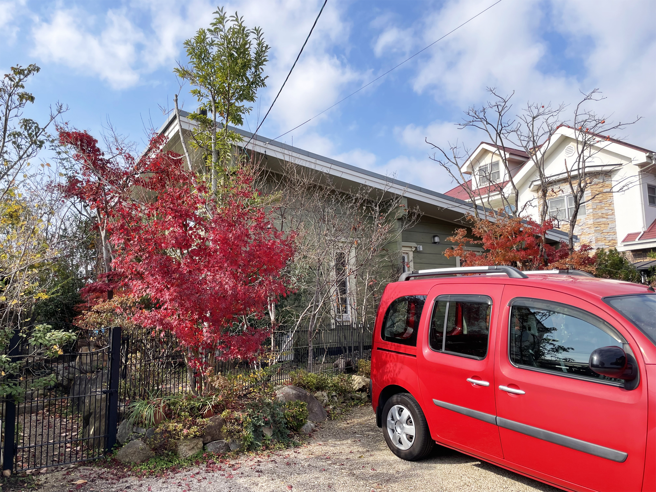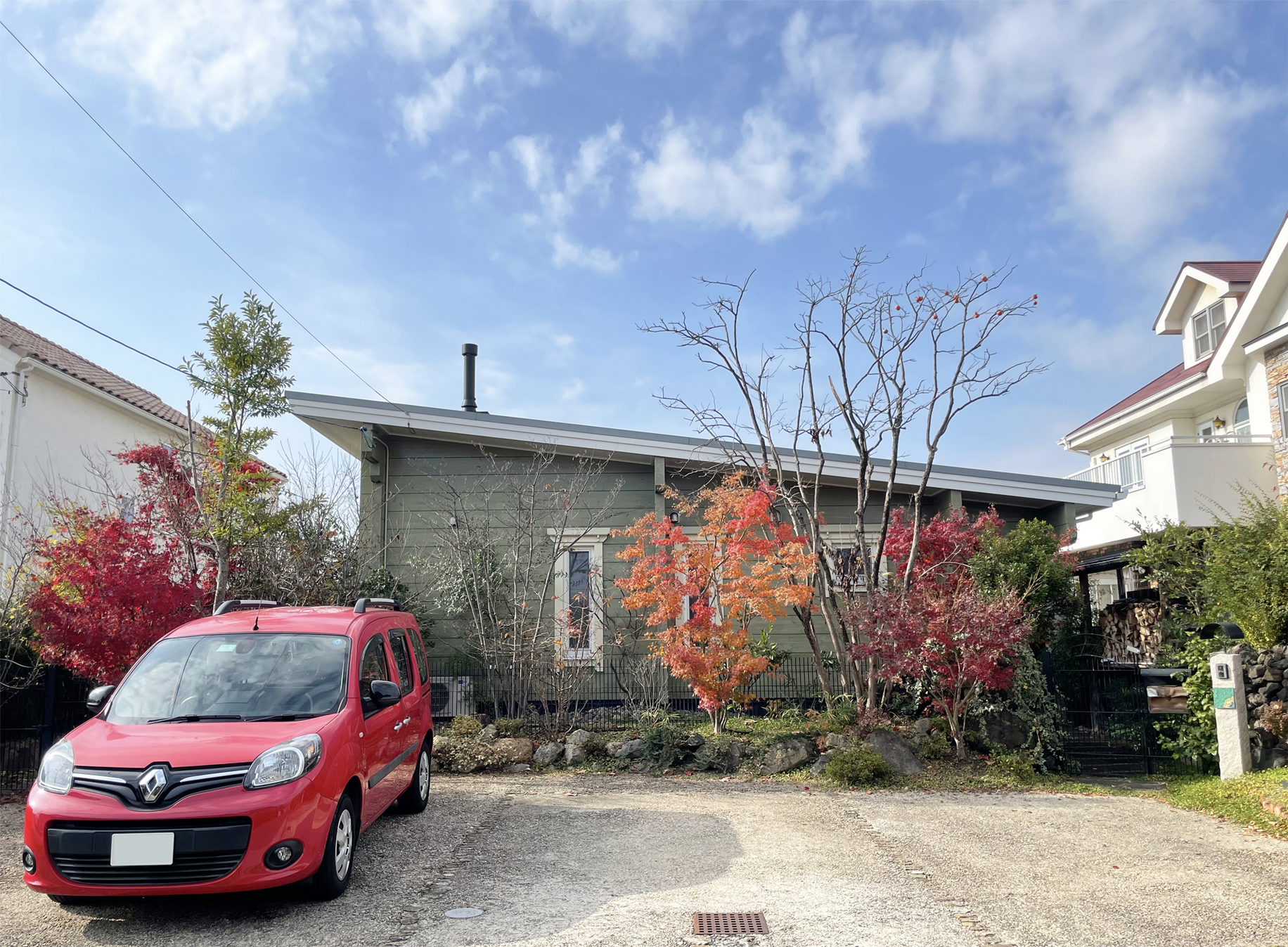 ご建築から5年で外構の木々も成長し、その自然に上手く溶け込む温かみのある薄緑色です。