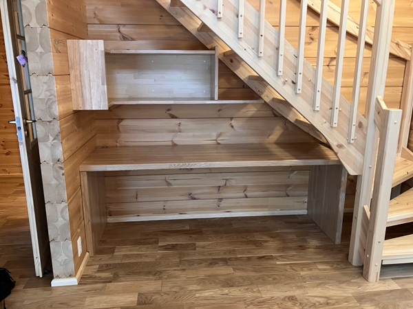 これは、階段下デスクと棚。